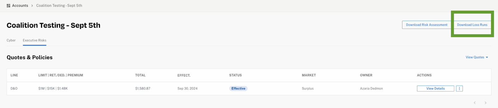 You can now generate Executive Risks loss runs instantly from the Broker Platform for accounts with no prior claims.