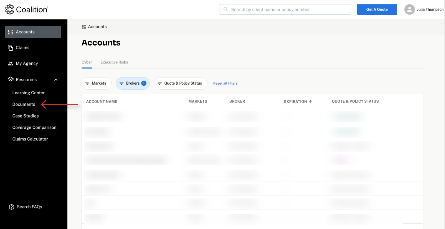 You can find a specimen copy of Coalition's Cyber Liability and Technology Errors & Omissions insurance policy in the Broker Platform. To access the specimen, log in here, and then click "Resources" in the left navigation bar, and then click "Documents"
